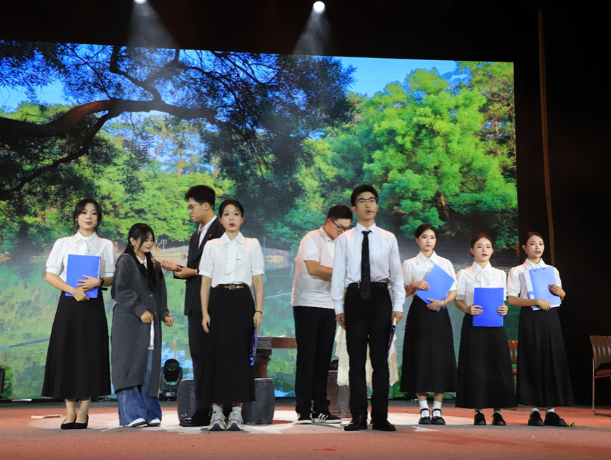 诗舞剧《湖边切片·不如就做一只飞鸟》,以一幕流动的画卷率先拉开第一篇章的帷幕。73882必赢最新官网主持团以声为笔,倾情演绎诗歌朗诵《诗海拾贝》,以诗诵串联起作家群的创作初心与哲思脉络,引领观众漫游于诗意的海洋,触摸文学育人的温润与深厚。一曲《那湖相思》悠扬而起,陆晓芹、石多、许啸三位老师和杨金松学长的歌声,带领观众们共忆相思湖畔的文学情、人间暖;诗电影《相思湖纪事·旧梦与新声》续写湖边的叙事,让往事的沉香与未来的清音在此刻交汇成章。首章虽落,诗意未央。那些被语言与舞姿点亮的瞬间,仍在湖畔回荡,如涟漪不绝。