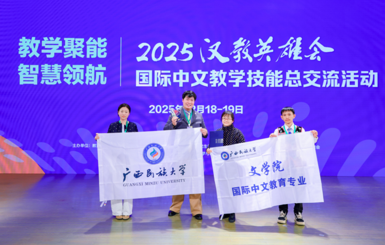 该团队指导教师为何山燕老师,团队成员为2023级汉语国际教育专业硕士研究生陈泽豪、2024级国际中文教育专业硕士研究生张雅娟以及2024级中老联合培养中文师范专业“2+2”项目本科留学生占锦杰。