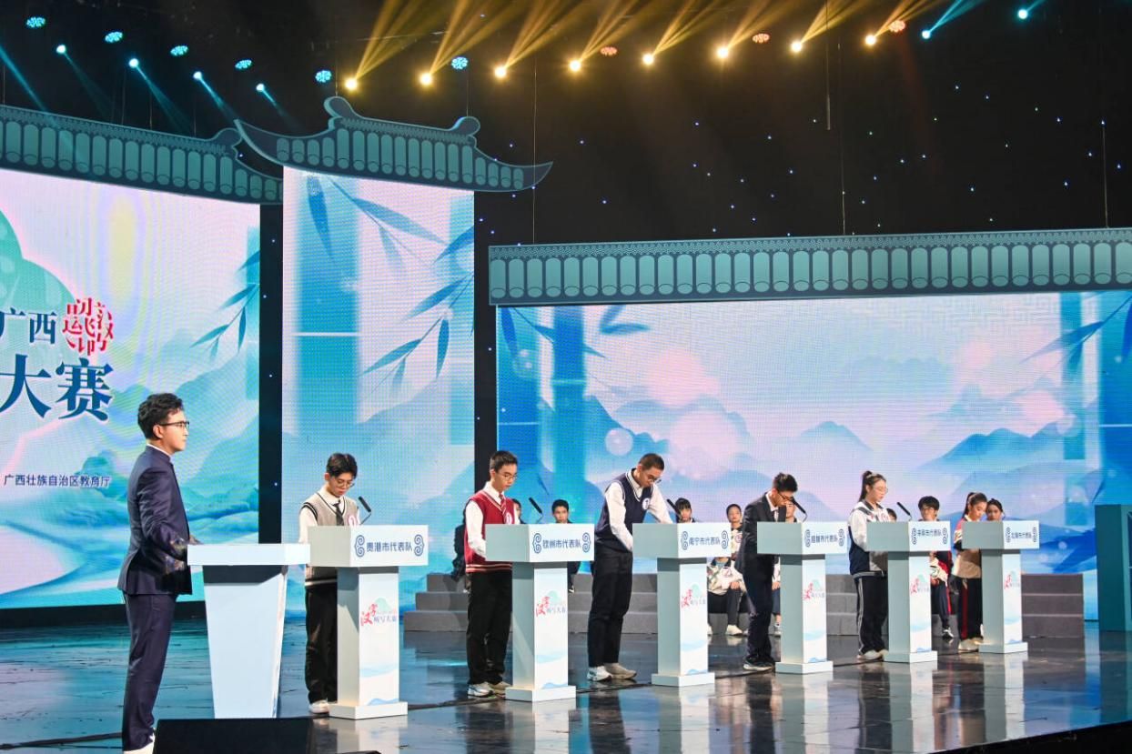 复赛设置分组赛和复活赛两轮比拼。经选手现场表现、评委专业判定、仲裁严格审核的层层评选,崇左、来宾、贵港、百色、南宁、玉林、贺州、桂林、钦州、北海共10支队伍晋级半决赛。半决赛上,来宾、贵港、南宁、桂林、钦州、北海6支代表队脱颖而出,跻身决赛行列。大赛来到紧张焦灼的决赛,各代表队势均力敌,鏖战正酣。第一轮冠亚季分水岭角逐战中,6支代表队选手同台较量,贵港代表队在看词写拼音题失手,遗憾止步;其余代表队紧咬比分继续新一轮较量,来宾、南宁代表队在古文字题双双折戟,抱憾离场。第二轮冠亚军巅峰对决赛中,桂林代表队在看图写词题失掉关键分,止步第三名。古文字题成为整场赛事的转折点,钦州代表队凭借对“竹”字的精准作答,一举锁定胜局,成功摘得本次大赛桂冠,北海代表队荣获第二名。