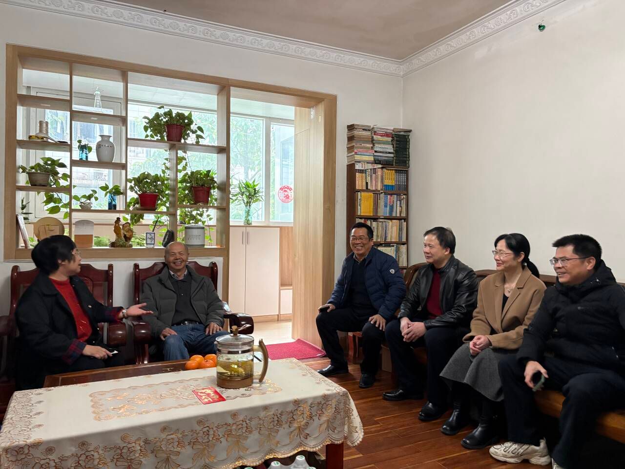 1月22日,唐艳军书记带领语文教研室全体教师看望慰问吴爱月、陈遗勋两位老师