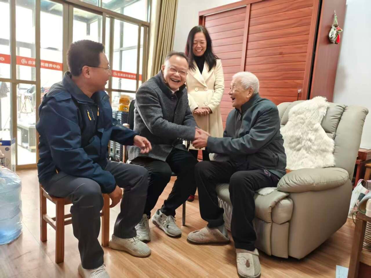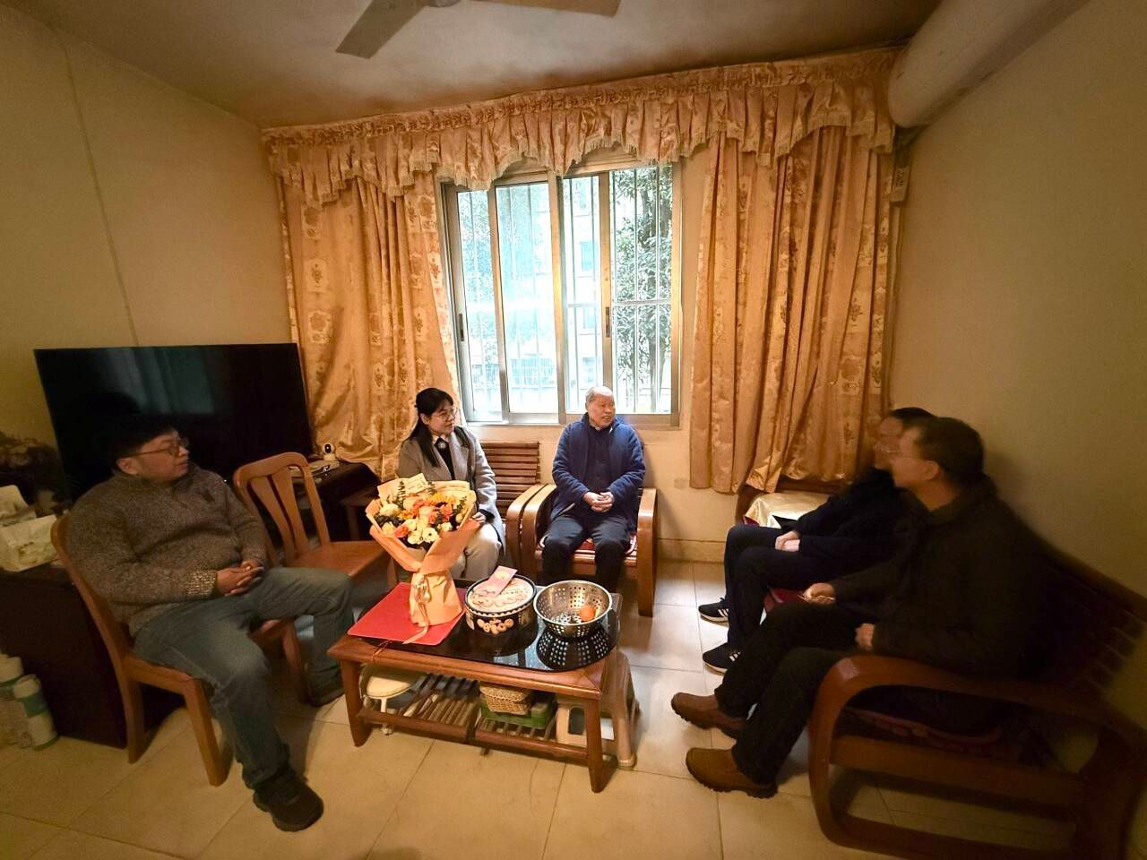 1月18日,唐艳军书记带领汉语教研室部分教师慰问朱文雄、朱峻之老师