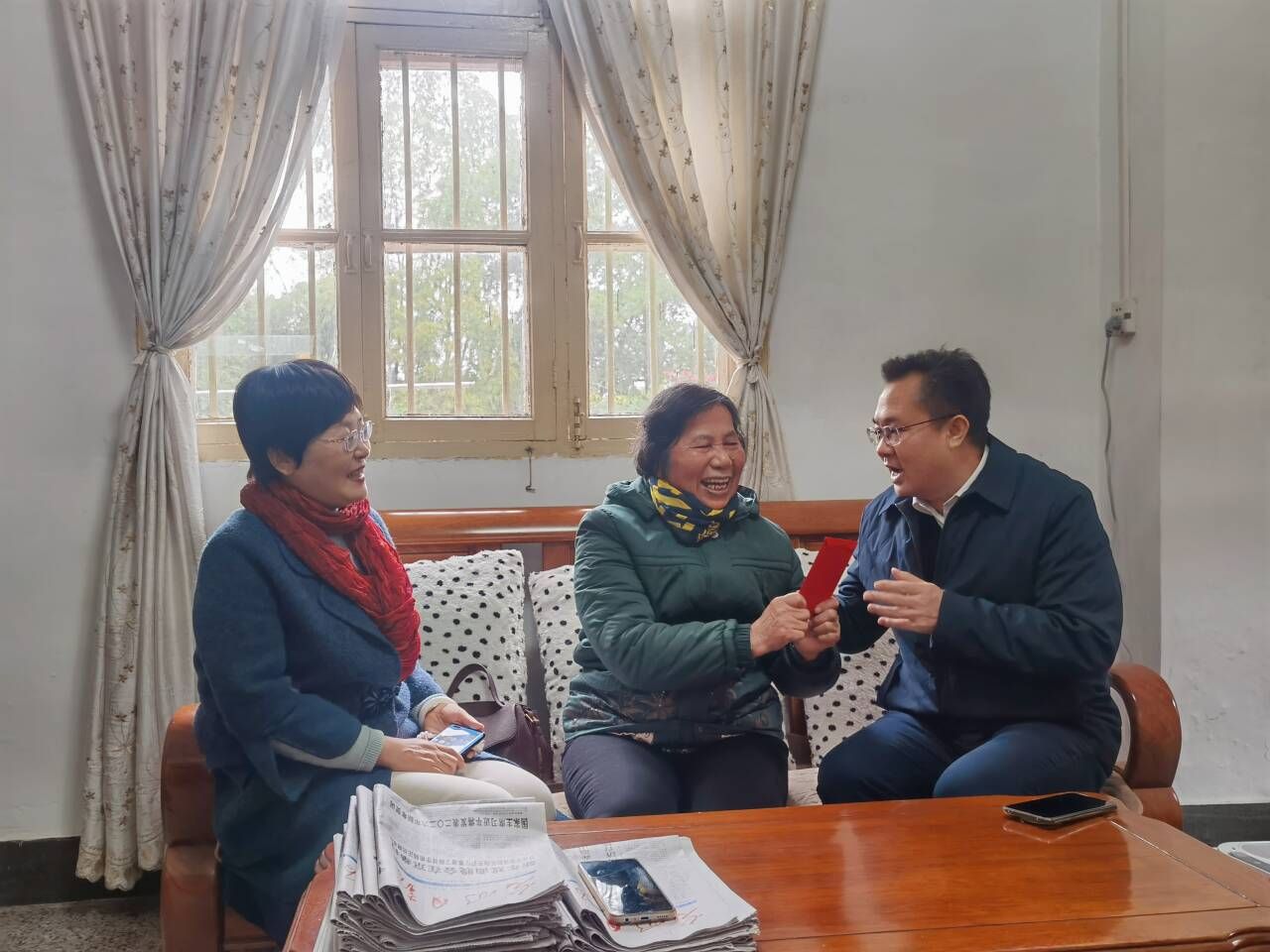 1月22日,唐艳军书记带领民族语言教研室教师代表看望慰问梁建凤老师