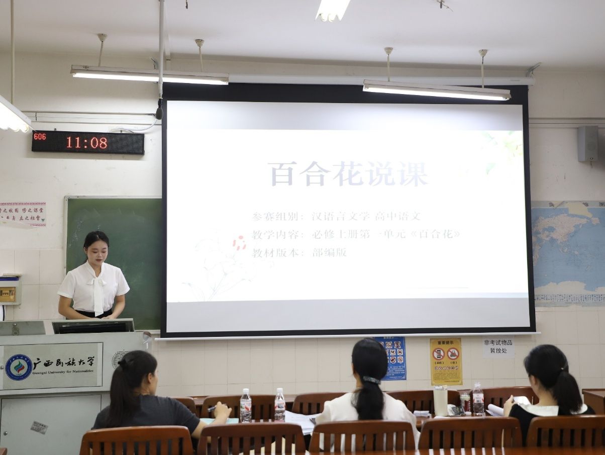 本次选拔赛设高中组,聚焦高中语文课程教学核心。比赛采用抽签方式确定顺序,教学技能考核涵盖说课、板书设计及模拟上课三个环节,要求参赛选手在10分钟内完成一个课时的现场综合技能展示。