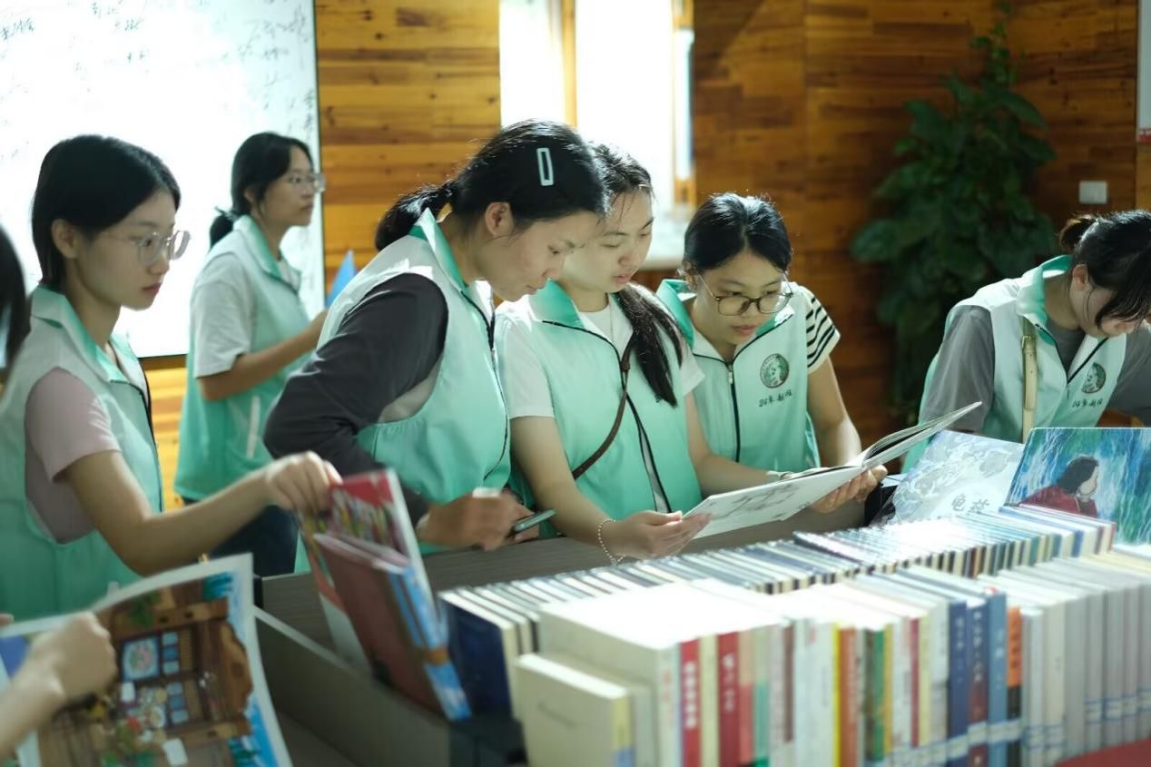 同学们在馆内阅览探讨