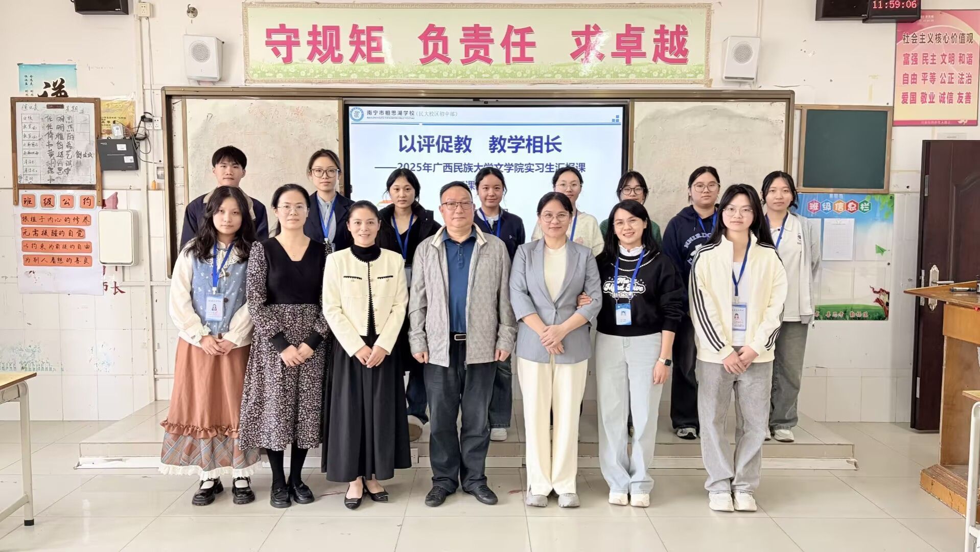 12月2日上午,必赢官网2022级师范生实习汇报课活动在南宁相思湖学校民大校区顺利举行。必赢官网副院长黄玲及指导老师罗红流到场听课,南宁市相思湖学校民大校区黄晅副校长、初一初二语文组全体老师及必赢官网2022级10名实习生共同参与了本次活动。本次活动集中展示了2022级师范生历经三个月教育实习所取得的扎实成果与显著成长。
