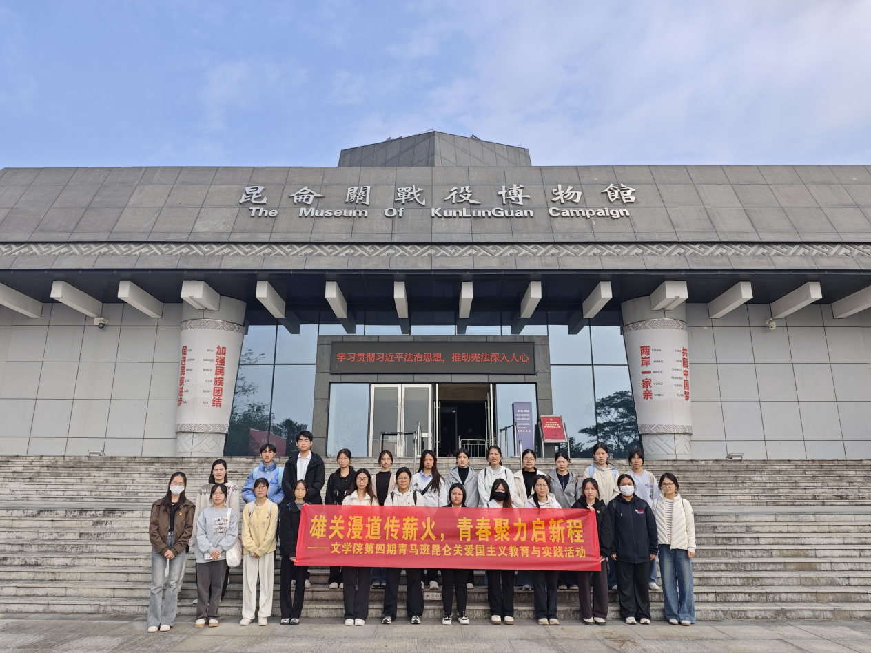为深入学习贯彻党的二十大精神,强化思想政治引领,筑牢青年红色根基,12月7日,73882必赢最新官网组织第四期青马班学员及学院骨干,赴昆仑关全国爱国主义教育基地开展主题教育活动。