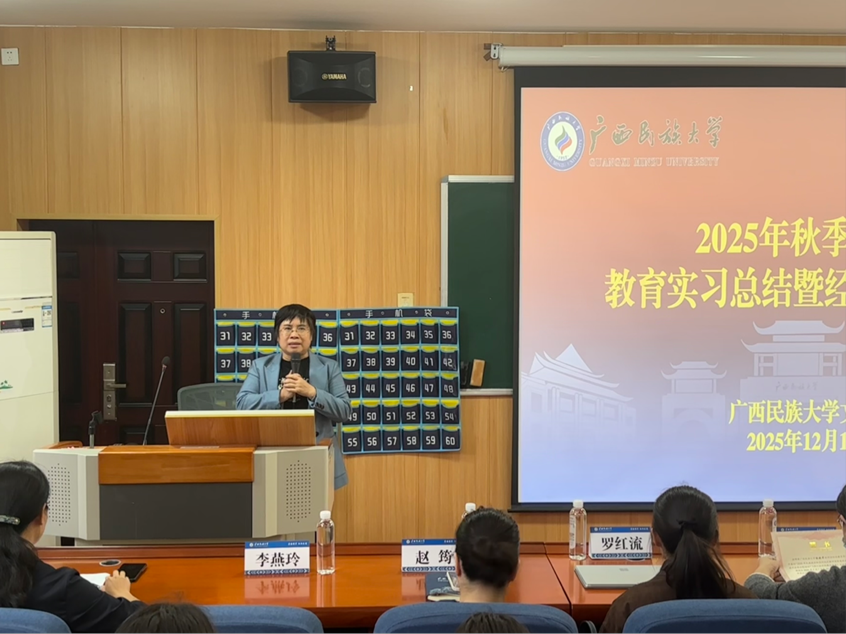 陆晓芹院长在讲话中,充分肯定了师范生在教育实习中展现出的扎实专业素养与认真负责的工作态度以及各位指导老师的辛勤付出。陆晓芹回顾了学院近五年师范教育工作的推进历程。她指出,学院深耕师范教育60余年,重视师范生实践能力的培养,培养出莫振高校长、韦喜凤书记等扎根基层的优秀教育工作者,为同学们学习树立了榜样。学院在本科工作中搭建实践报告平台,旨在鼓励实习老师分享实习中的收获与成长,激励学弟学妹们在教育道路上勇毅前行。她对本次师范生们实习收获成果表示期待。