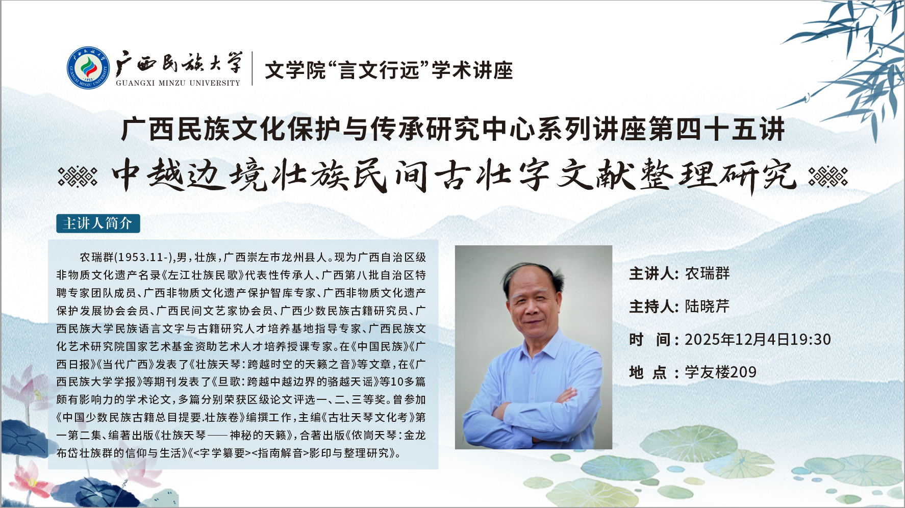 73882必赢最新官网“言文行远”学术讲座 广西民族文化保护与传承研究中心系列讲座 第四十五讲
