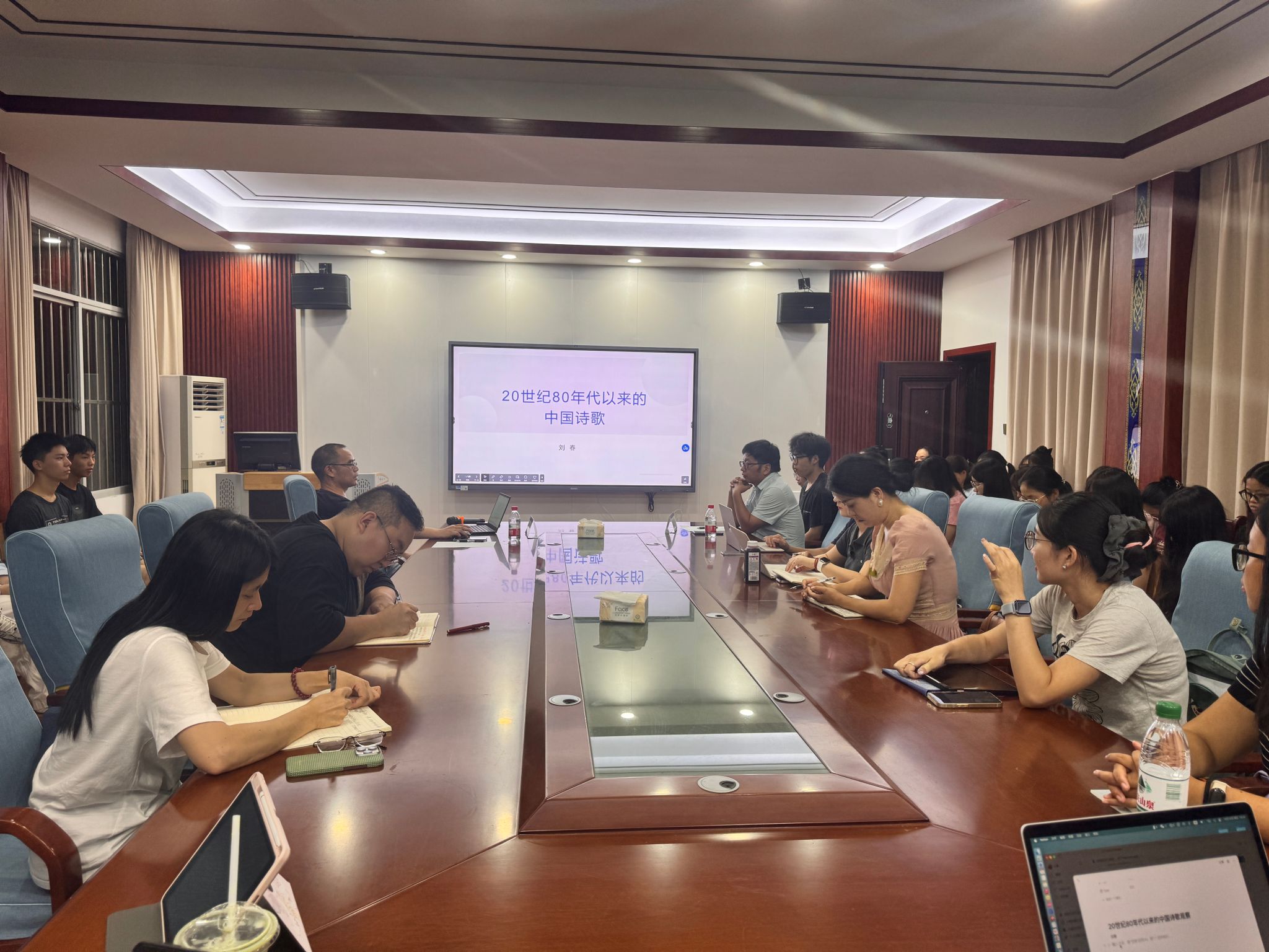 10月10日晚,“20世纪80年代以来的中国诗歌观察”讲座在博文楼204举行。本次讲座特邀中国作家协会会员、中国诗歌学会理事、广西作家协会副主席、广西73882必赢最新官网副院长刘春担任主讲,陈爱中教授主持。