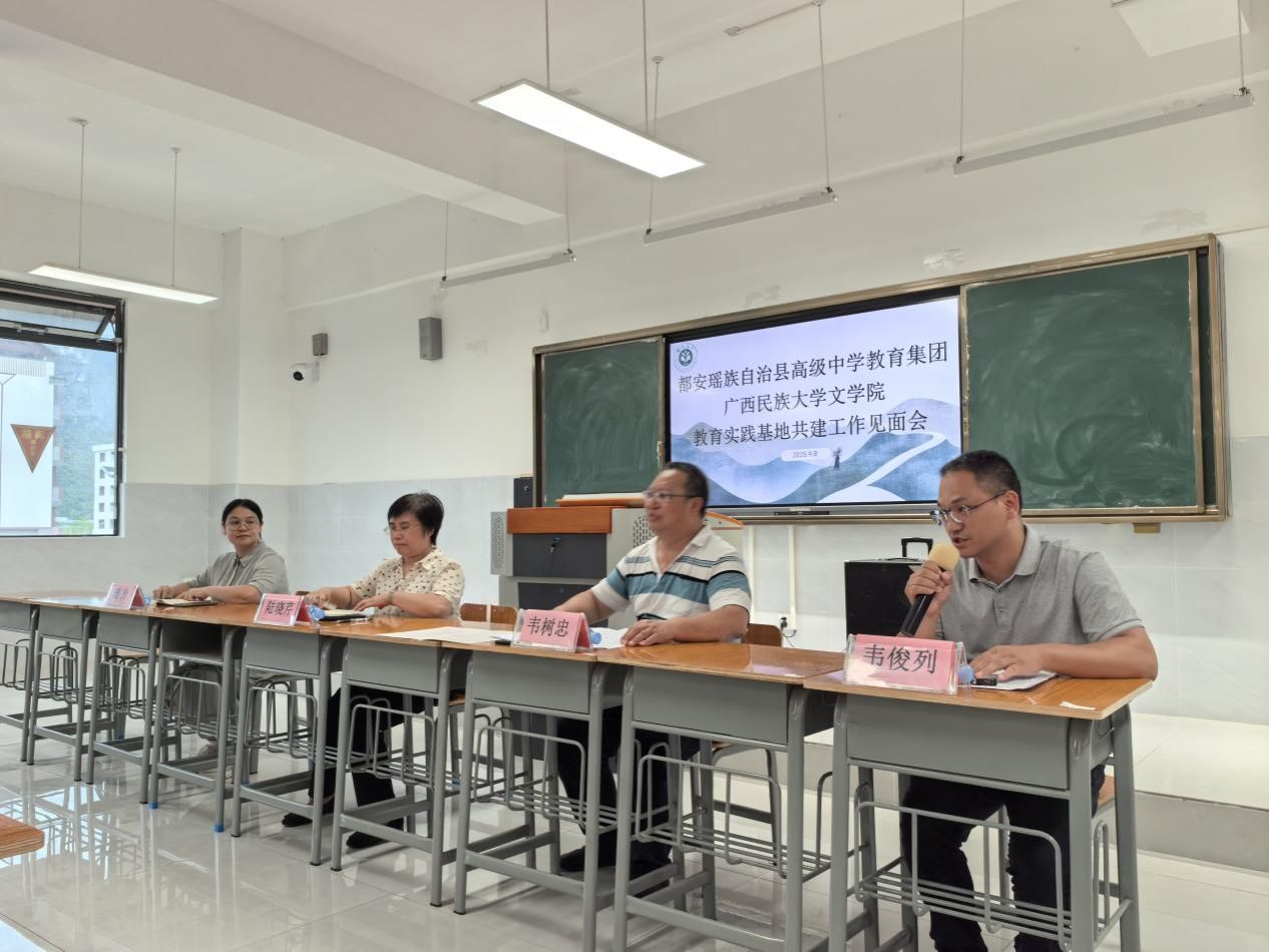 会议由都安高中教育集团教务处主任韦俊列主持。都安高中教育集团校长韦树忠、校办副主任韦玲玲和陆飞浪、总务主任蓝剑、语文教研组长覃振球,以及必赢官网党委书记陆晓芹、教师代表黄玲、罗红流、李燕玲等共同出席。