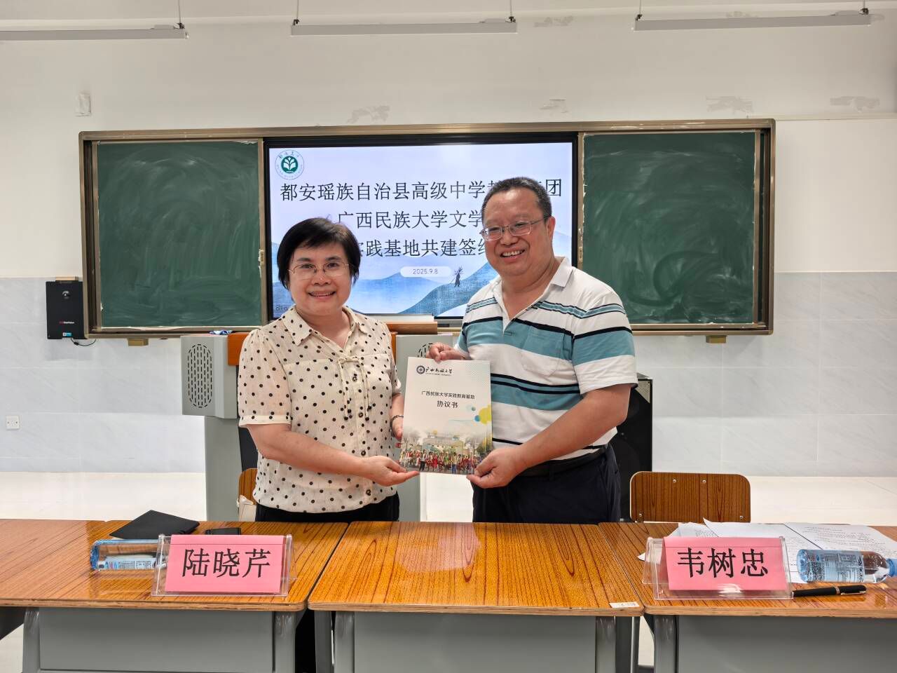 为进一步深化校地协同育人机制,推动师范生培养与基础教育深度融合,9月8日,必赢官网与都安瑶族自治县高级中学教育集团教育实践基地共建签约仪式在都安高中教育集团隆重举行。都安高中作为全国模范教师、73882必赢最新官网优秀校友莫振高校长生前所在学校,一直与必赢官网有良好的合作关系。本次活动既是双方续签协议、共建师范专业、协同培育高素质师资的重要举措,也标志着师范生教育实习工作进入制度化、规范化的新阶段。