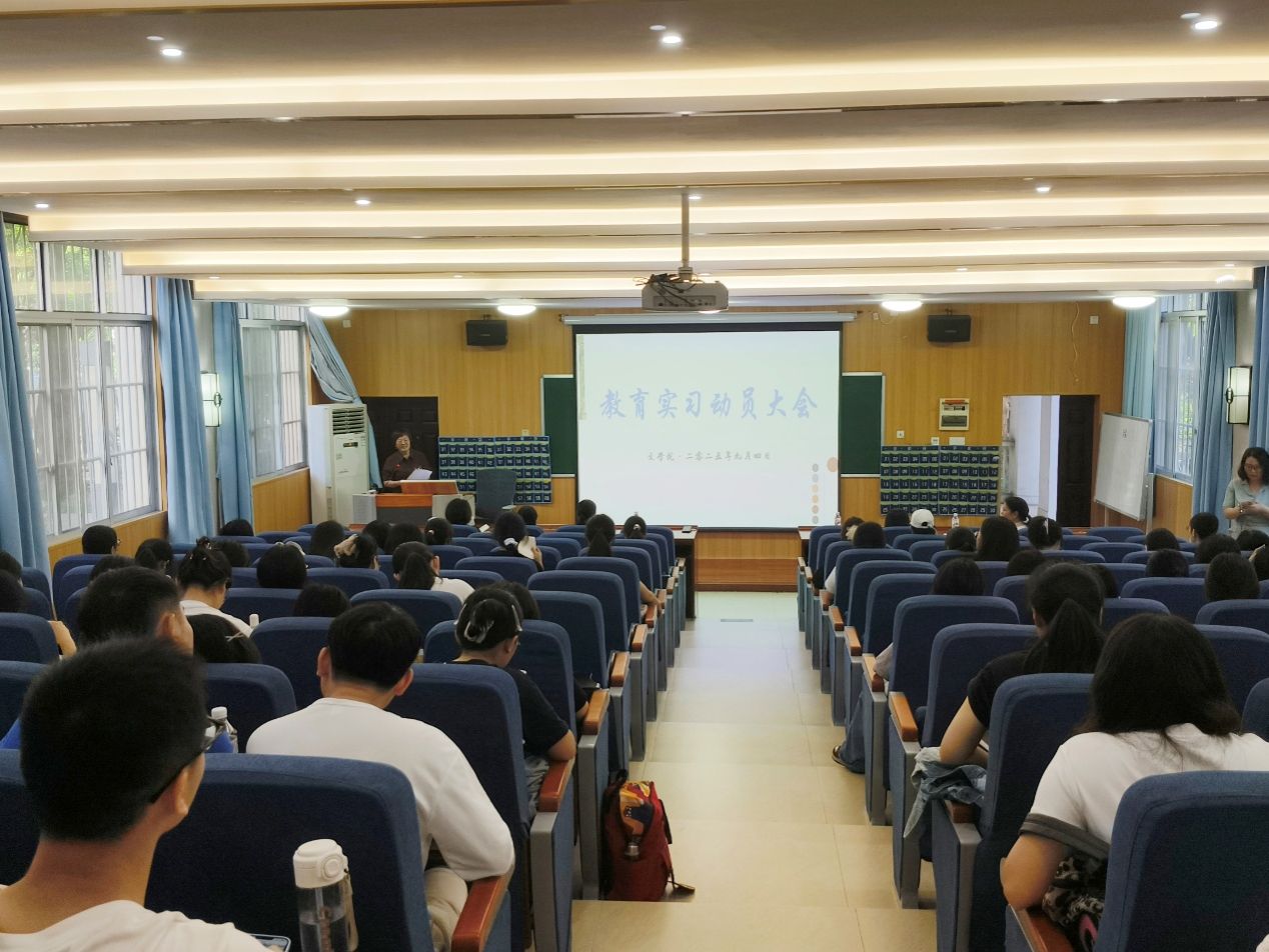 9月4日,为引导学生做好实习前的各项准备,保证实习工作的顺利开展,73882必赢最新官网在博文楼一教一梯召开2026届汉语言文学师范专业毕业生教育实习动员大会,语文教研室主任吕晓燕老师主讲,73882必赢最新官网党委副书记吴先源及蒙银菊、罗莹钰、罗红流、赵筠、吴侠、李燕玲等老师出席动员大会,2022级汉语言文学师范1、2班全体同学参会。