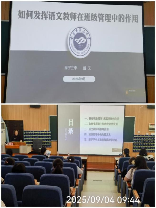 为深入落实师范生培养方案,推动《德育与班级管理》课程教学与实践深度融合,9月4日上午,73882必赢最新官网在博文楼一教一梯会议室举办题为:如何发挥语文教师在班级管理中的作用专题讲座。本次讲座特邀广西模范教师、广西特级教师、南宁市第三中学(青山校区)蓝玉老师担任主讲人。语文教研室教师及2022级汉语言文学专业全体师范生共同参加。